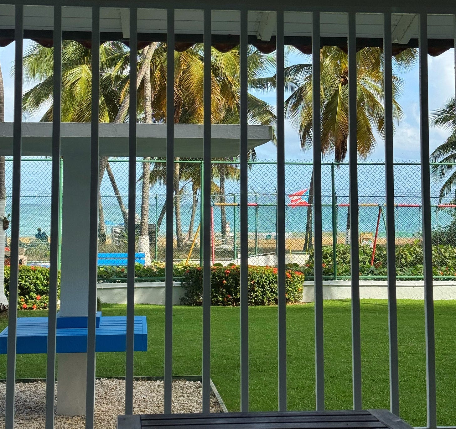 I feel so emotional. I’m sitting here in the Airbnb patio feeling the sea breeze, smelling the salt in the air, watching the beach workers dance in the sand to salsa. The Puerto Rican flag is everywhere, always flying high, colors vibrant. The palm trees sway to the music, and even the pelicans diving into the ocean time it to the tempo. I’m enamored. I feel so grateful that I’m crying here in this patio, my nose a Rudolph red.